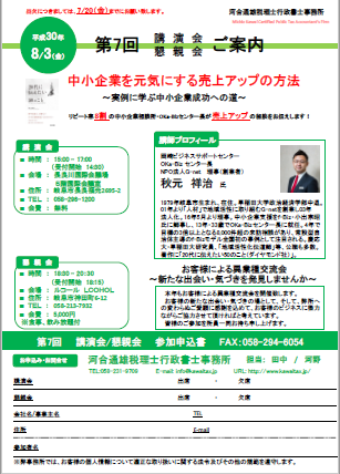 | タイトル | 第七回 河合通雄税理士行政書士事務所 講演会・懇親会 |