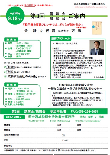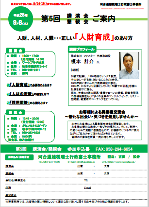 | タイトル | 第一回 河合通雄税理士行政書士事務所 講演会 |