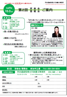 | No.2 | 2013.10.3 研修会:15:00-16:30 懇親会:17:30-19:30 |