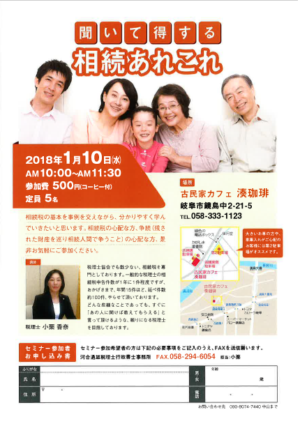 | 2018. 1.10 聞いて得する相続あれこれ ワンコイン 相続セミナー | |