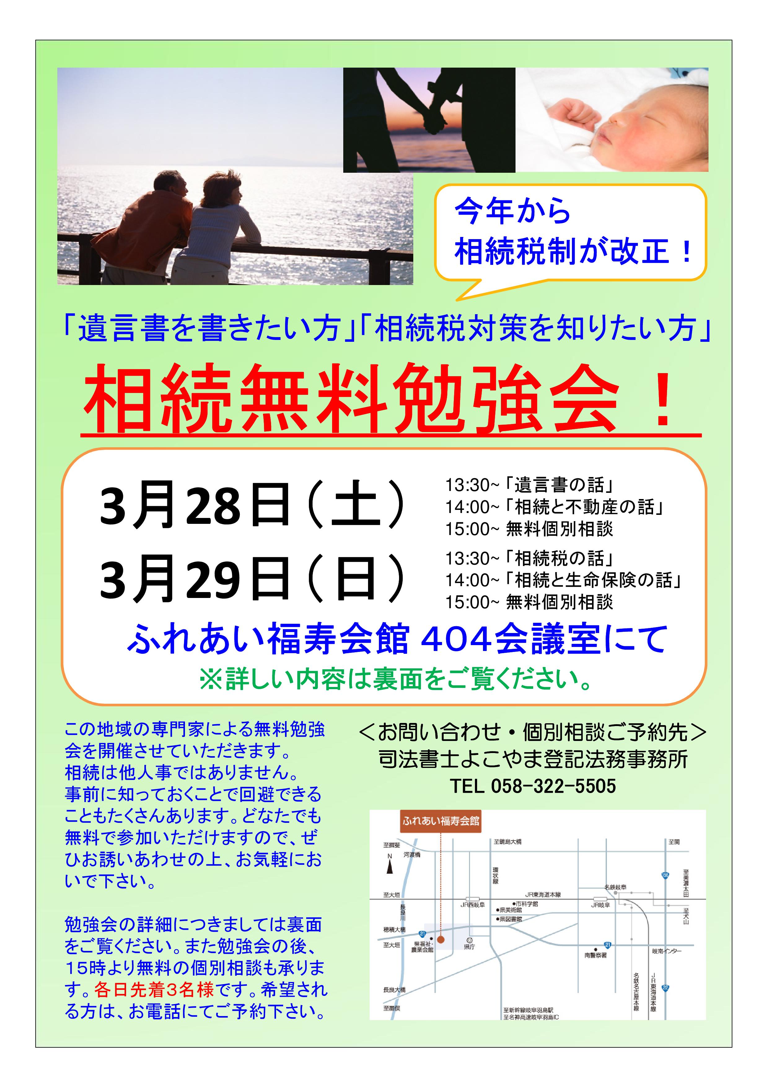 | 2018. 3.21 相続無料相談会:13:30〜 | |